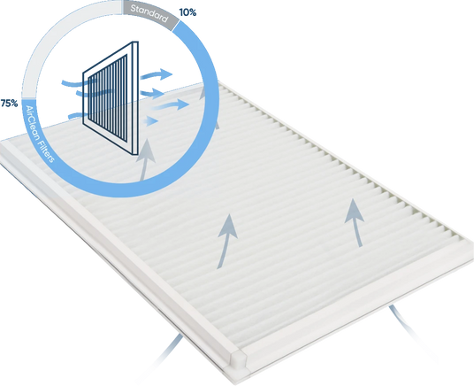 Air Clean Filters™ have a high-efficiency V-pleat filter designed to trap pollutants that are over 10 times smaller when compared to traditional panel filters. By trapping these pollutants, not only does the filter keep the unit cleaner and running more efficiently, but it also helps to ensure the air around us stays cleaner.