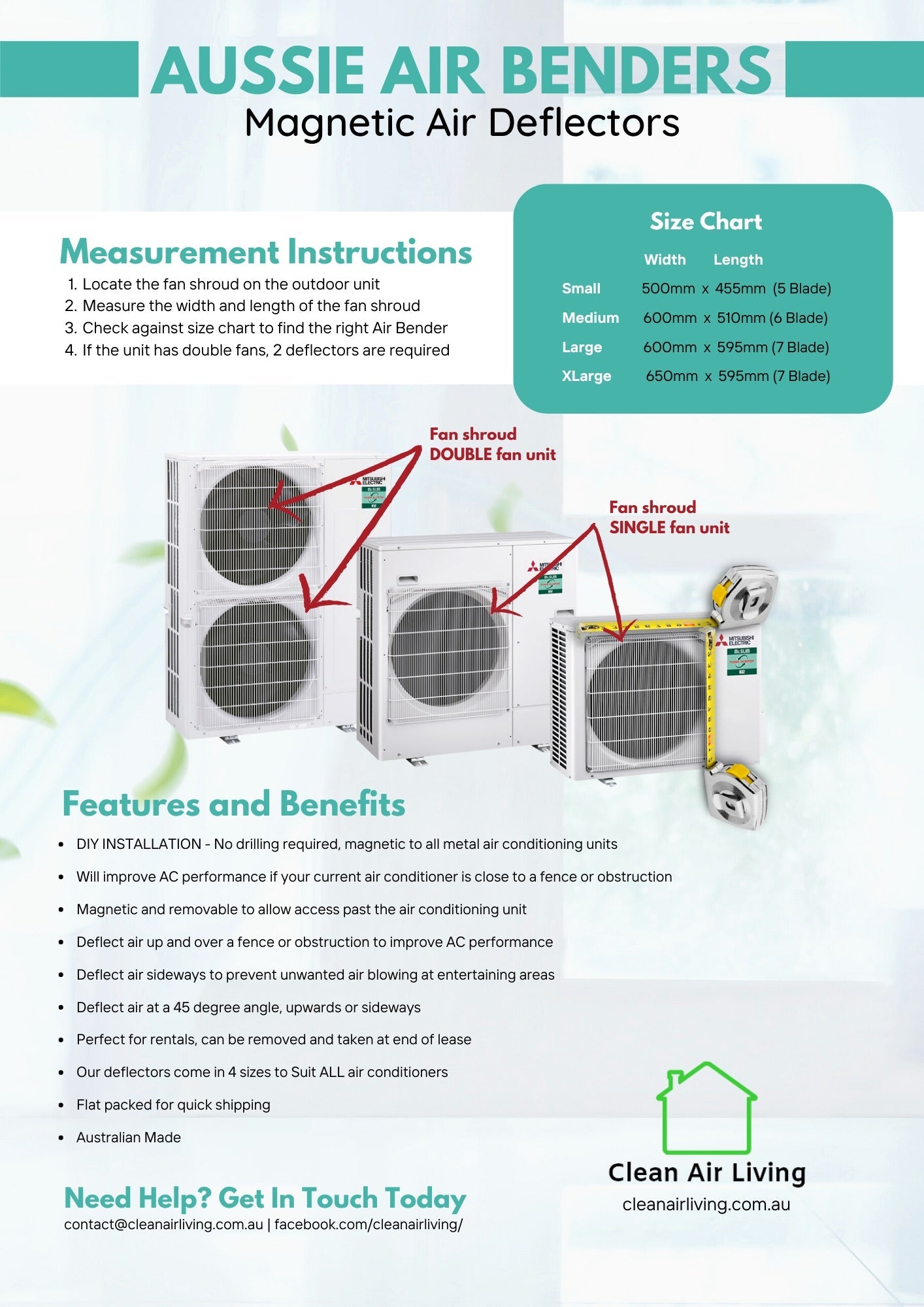 - Our deflectors come in 4 sizes to Suit ALL air conditioners
